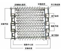 鏈條標(biāo)號 節(jié)距P 鏈桿節(jié)距P1 鏈桿直徑D 網(wǎng)絲直徑D1 網(wǎng)帶螺距L 網(wǎng)帶節(jié)距J ?。≒) (p) (p1) (D) (D1) (L) (J) C2042 25.4mm 25.4×*節(jié) 5~8mm 1.0~1.6mm 3~19mm 6.35~25.4mm C2052 31.75mm 31.75×*節(jié) 6~10mm 1.2~2.0mm 5~21mm 6.35~31.75mm C2062 38.1mm 38.1×*節(jié) 8~12mm 1.5~2.0mm 8~21mm 6.35~38.1mm C2082 50.8mm 50.8×*節(jié) 10~12mm 1.5~3.0mm 10.5~21mm 12.7~50.8mm C2160 101.6mm 101.6×*節(jié) 10~14mm 1.5~4.0mm 10.5~27mm 12.7~50.8mm